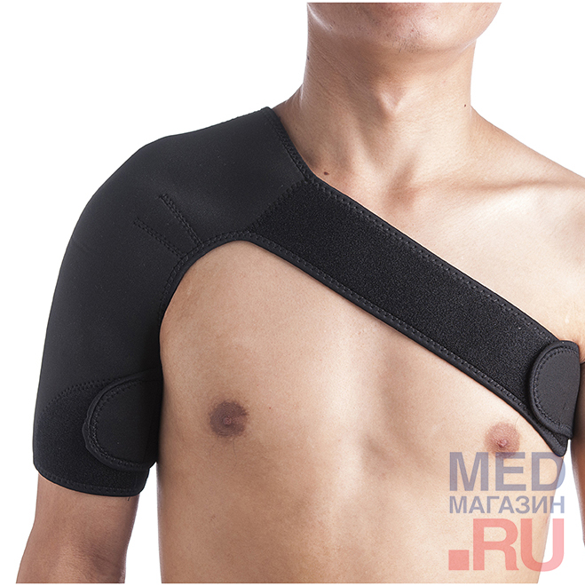 Ортез для плеча удобен при надевании и фиксируется в области плеча при помощи широкого ремня (посредством D-колец)