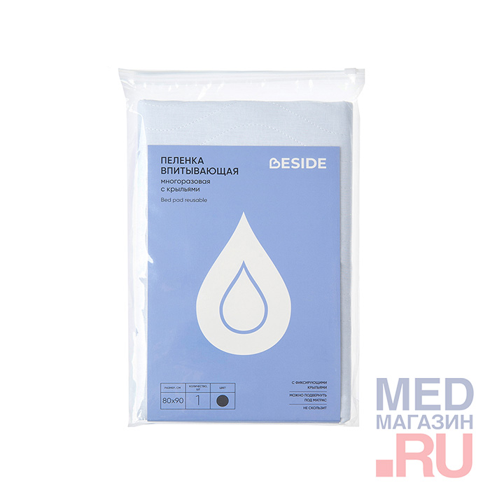 Многоразовая впитывающая пеленка 80х90 см, с крыльями из натурального хлопка, по 45 см каждое, торговой марки BESIDE изготовлена из высококачественных и безопасных материалов. 3 слоя защиты обеспечивают комфорт и удобство на протяжении всего использования. Верхний слой пелёнки изготовлен из хлопка и полиэстера - он впитывает влагу. Впитывающий слой из полиэстера и вискозы быстро и равномерно распределяет влагу внутри. Нижний слой пеленки - водонепроницаемый, надежно удерживает влагу, защищая постельное белье и мягкую мебель от намокания. Многоразовая пеленка простегана и не сбивается, а благодаря фиксирующим крыльям, которые легко можно заправить под матрас, она прекрасно держится, обеспечивая пелёнке надёжную фиксацию, а человеку – спокойный крепкий сон. Подходит для любых поверхностей.