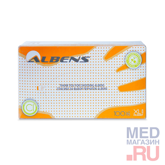 Перчатки неопудренные, однохлорированные, текстурированные, ALBENS 7013: