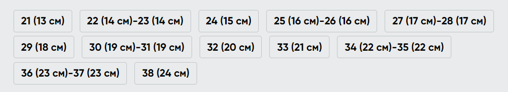 Размерный ряд: