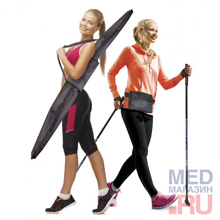 - чехол для палок для скандинавской ходьбы представляет собой поясную сумку, которая раскладывается в полноразмерный чехол