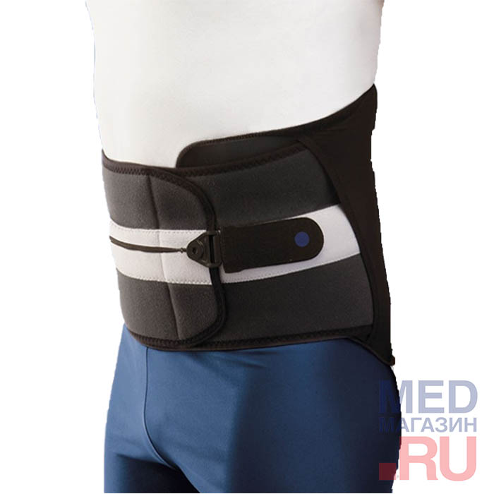 Задняя часть корсета содержит модуль из термопластичного полиуретана низкой плотности, который может быть извлечен при необходимости. В корсете также имеется передняя компрессионная пластина. Крепится корсет с помощью застежки Велкро и двух шнурков. При желании и необходимости пластина из термопластика может быть удалена, тогда корсет станет полужестким поясничным бандажом.